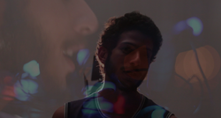 Em paralelo, elaboramos uma segunda montagem, composta por experimentações com luz, tinta e em cenas específicas para contextualizar a narrativa. Esse processo foi um fator determinante para a construção da interatividade, na qual tínhamos 2 vídeos finais e apenas uma tela de exibição, sendo assim o usuário tinha o poder de escolher qual gostaria de visualizar, bem como inserir e controlar filtros na montagem básica. Ao movimentar o usuário controlava os filtros, incluindo o da opacidade, que permitia visualizar e brincar com a sobreposição dos vídeos. Através de botões ele escolhia qual filtro desejava.